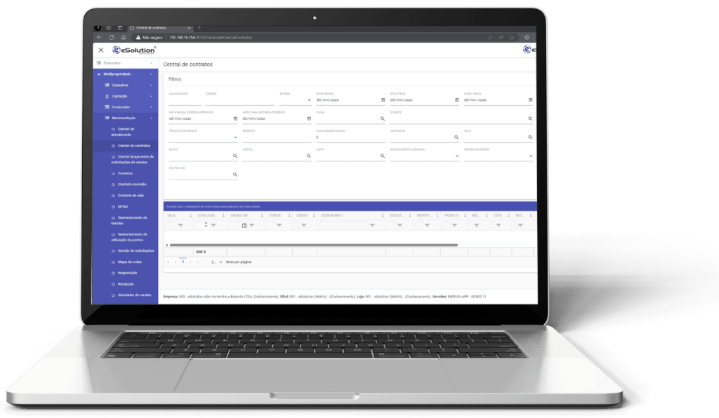 Apresentamos o eSolution Multipropriedade, uma solução desenvolvida para elevar a eficiência e atender todas as necessidades operacionais e comerciais de seu empreendimento. Com recursos que otimizam desde a gestão de estoque até a administração de contratos e pagamentos, simplificam cobranças, suporte pós-venda e facilitam renegociações. Maximize sua operação e reduza custos com uma plataforma completa e integrada!
